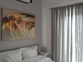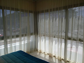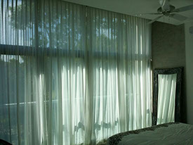 La combinación de la gran variedad de telas Gasas y Black Out, crean en la habitación una atmosfera cálida y confortable.